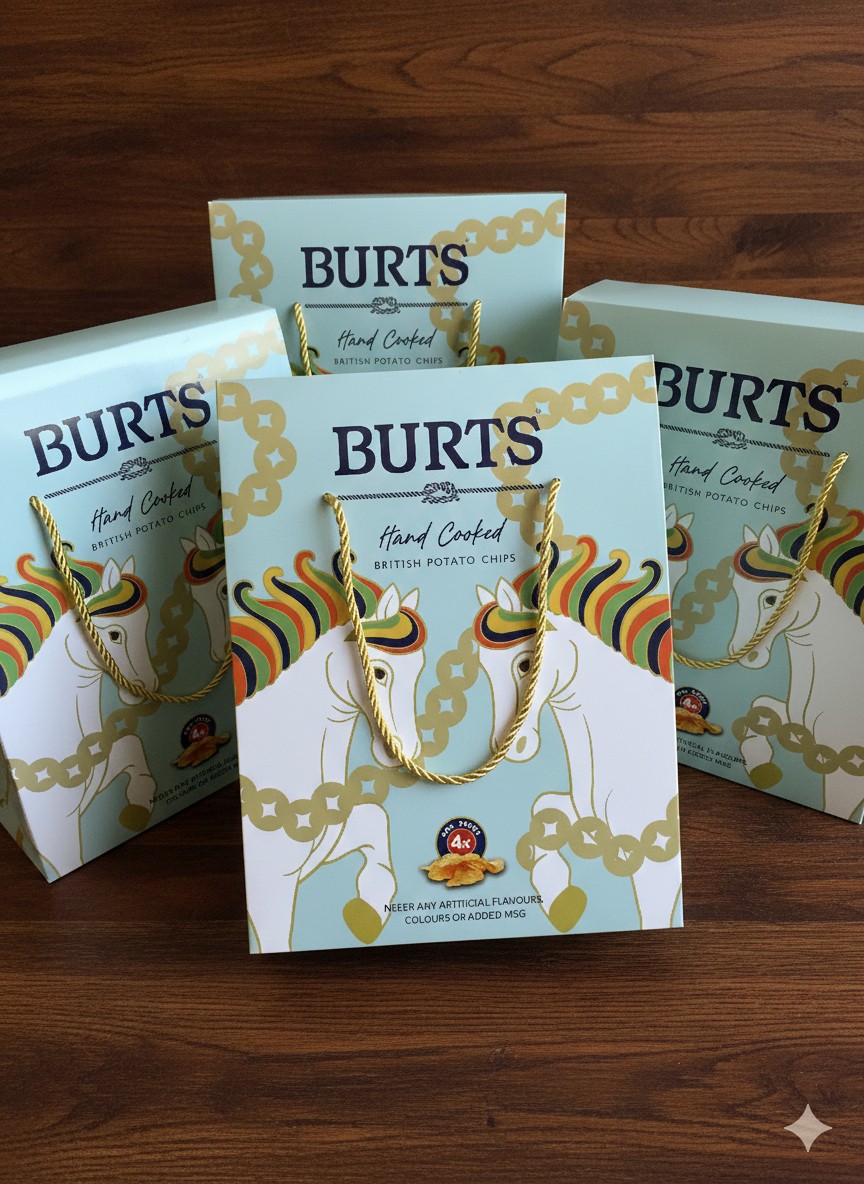 The overall palette is grounded in an elegant British-inspired light blue, deliberately departing from the conventional red tones of Lunar New Year packaging. This not only allows the gift box to stand out among seasonal products, but also visually tempers the fiery symbolism traditionally associated with the “Year of the Red Horse.” Balancing tradition and modernity, the design introduces a more nuanced and composed expression for the brand’s festive offering.